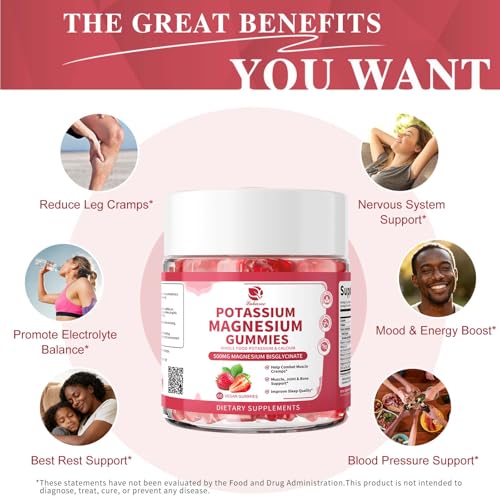 Extra Strength Chelated Potassium Magnesium Supplement: As essential minerals, potassium and magnesium are crucial. Studies show that magnesium helps regulate vitamins and nutrients, while potassium supports electrolyte balance. Together, they work synergistically to help with muscle relaxation, support the digestive system, nervous system, and sleep*, providing comprehensive mineral support for daily health and bodily functions