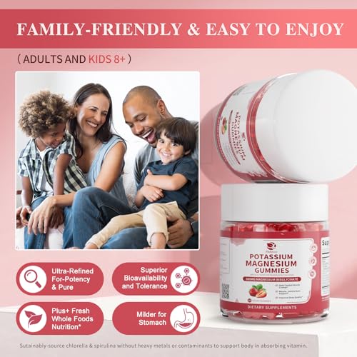 Well-Rounded & Easy to Enjoy: Designed for the whole family, our sugar-free potassium magnesium gummies feature a non-stick oat fiber coating and a wide-mouth jar for easy, pleasant use. They offer a delicious, stomach-friendly alternative to capsules—supporting daily mineral and nutrition needs with better absorption and no aftertaste