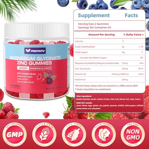 90 CT Magnesium Glycinate Gummies 600mg, Sugar Free Magnesium Gummies w/Zinc & Vitamin D3 & K2 - Magnesium Supplements for Sleep, Supports Bone Health, Nerve & Immune Function