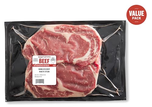 Amazon Grocery, Beef Ribeye Steak, Boneless, Value Pack, USDA Choice, Weight Varies