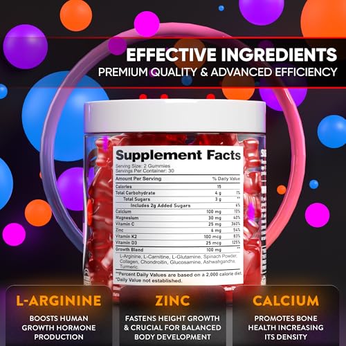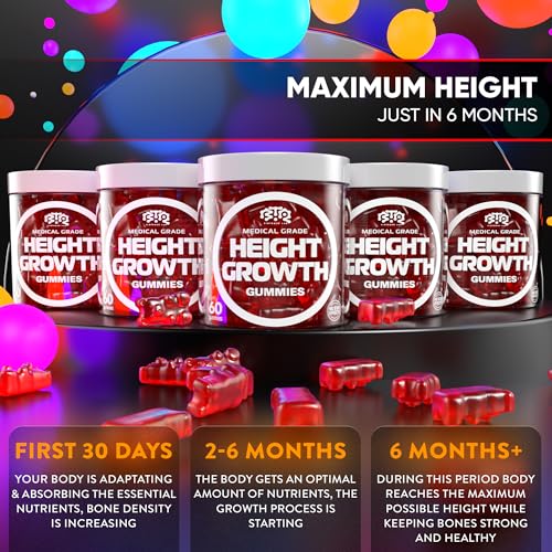 Unlock your height potential- Achieve your dream height with our growth supplement, a gluten-free formula designed to boost bone growth and increase height. Maximize your growth potential with our height enhancer pills, packed with essential vitamins and minerals to support bone growth. Support your growth with our height gummies for kids, teens and adults. The blend contains perfectly balanced ingredients. Get healthy bone growth & strength with our natural product.