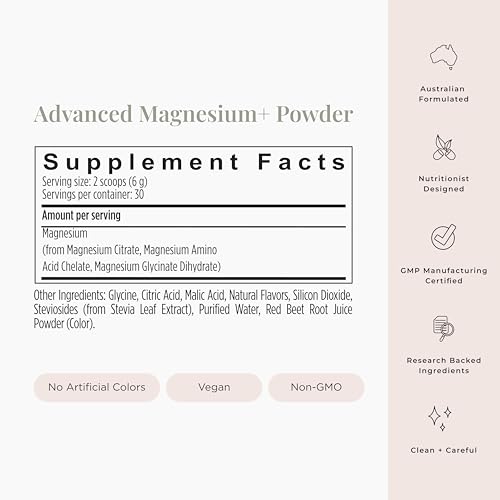 • Three Types Of Magnesium: Each serving is balanced with three different types of magnesium: glycinate, citrate, and amino acid chelate.