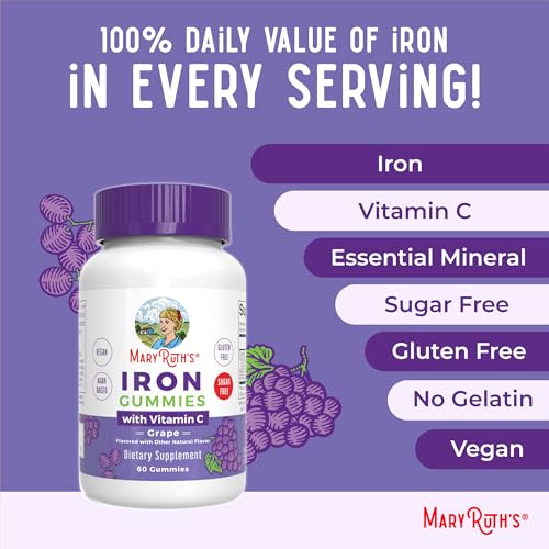 MaryRuth's Iron Gummies for 14+ with Vitamin C for Absorption | Sugar Free | Gummy Iron Supplement + VIT C | Energy Metabolism | Cellular Health | Immune Support | Vegan | Non-GMO | 60 Count