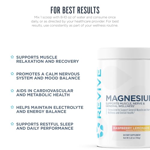 • Support Muscle, Nerve, & General Wellness: Magnesium Plus from Revive MD is a natural supplement that is designed to promote optimal health and wellness. 5.08oz. 30 servings.