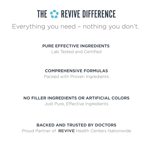 • Experience the Difference: The mission here at Revive MD begins with you. Our vision is to encourage, educate, and empower you to harness the powers of nature to better your health. Through the art of supplementation, we strive to help you experience the highest quality of life.